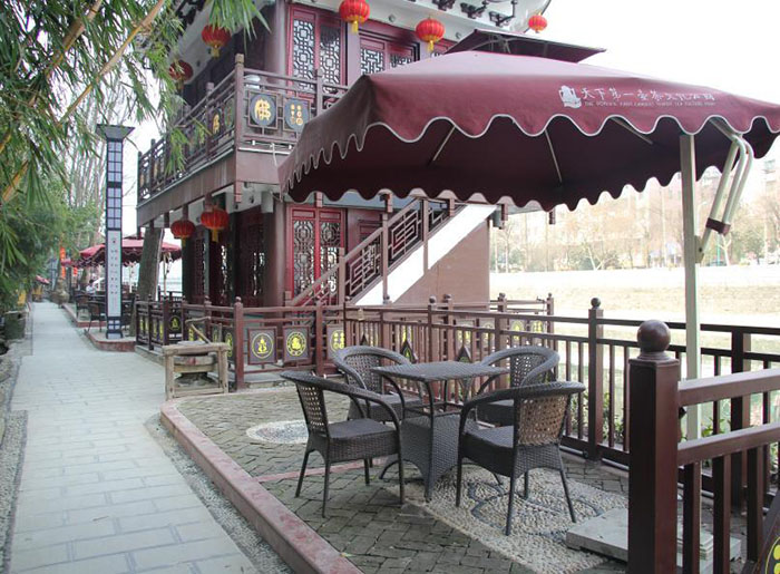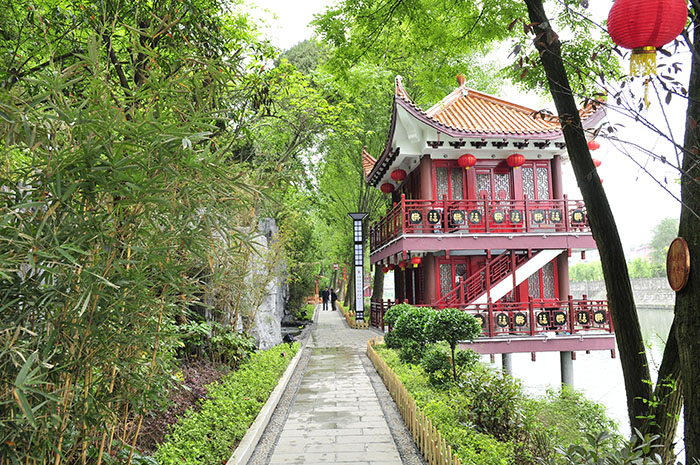 天下第一壶所在的火焰山北面,共修有三条曲折蜿蜒的文化古道、八个观景台、两个亭子(湄江吟社亭、古今茶语亭)、一个孔雀屋、十一个石壁(分别雕刻了名家书写的:茶禅一味、雅、真、怡、寂、爱、和、缘、静、敬、清字)、雕塑群及各种奇石。其中火焰山北面三条古道分别命名为茶马古道、茶盐古道、茶诗古道,火焰山南面为茶源古道。道路的命名以中国茶历史、茶文化等为根据,可以强烈感受到醇厚的茶文化气息,令人赏心悦目,流连忘返。
